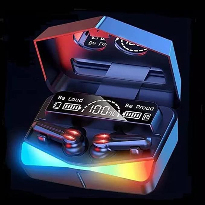 Generic - سماعات اذن بلوتوث V5.1 بتقنية بلوتوث M28 TWS بخاصية الغاء الضوضاء النشطة مع شاشة LED محمولة لاسلكية تعمل باللمس مقاومة للماء IPX5 بتصميم عاكس للالعاب والتمارين والبث عبر الانترنت، في الاذن، أسود
