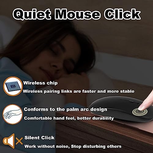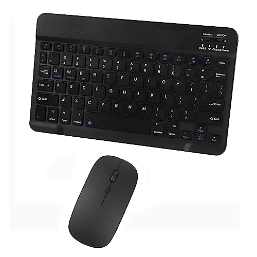 SHARE SUNSHINE - طقم لوحة مفاتيح وماوس لاسلكيين بلوتوث، فائق النحافة ومريح وصغير الحجم وقابل لإعادة الشحن، متوافق مع أجهزة آبل وآيباد وآيفون والموبايل وتابلت سامسونج وأجهزة أندرويد والكمبيوتر وماك والموبايل (لون أسود)