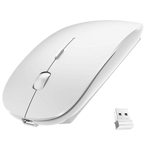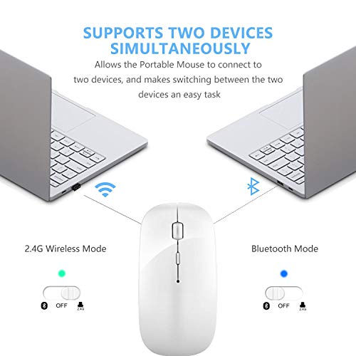 QIJIAYI - ماوس لاسلكي بلوتوث 4.0 بتصميم رفيع وقابل لاعادة الشحن 2.4G متوافق مع اللاب توب والكمبيوتر والتابلت وانظمة التشغيل ويندوز وMac OS واندرويد (لون ابيض)