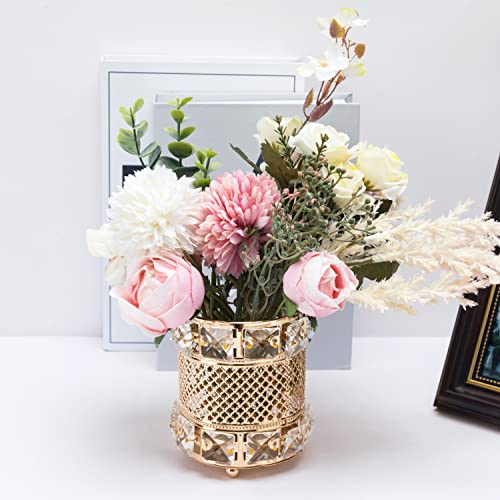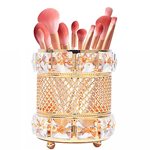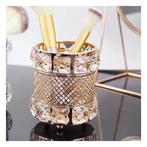 BLUETOP - حامل فرش المكياج مكياج كريستالي اظافر لامع بلا عيوب اكواب ذهبي منظم للاقلام والمشط