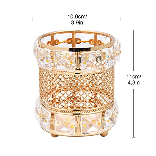 - ☀ سعة كوب فرش المكياج: حجم حامل فرش المكياج الكريستالي 3.9 × 4.3 انش. مثالية لفرش المكياج وأقلام الحواجب ومحدد العيون والماسكارا وشفرات الحلاقة وفرش الأظافر والمقصات الصغيرة وغيرها من مستحضرات التجميل.