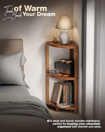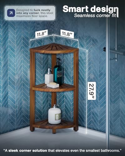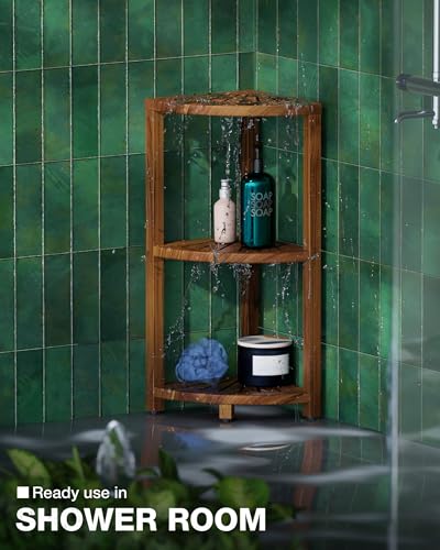 BLUEWEST - رف دش زاوي 3 طبقات من بلو ويست، منظم دش خشبي قائم مزود بأرجل مضادة للانزلاق، رف زاوية للحمام مقاوم للمياه ومتين، تصميم موفر للمساحة للتخزين في المطبخ أو غرفة المعيشة