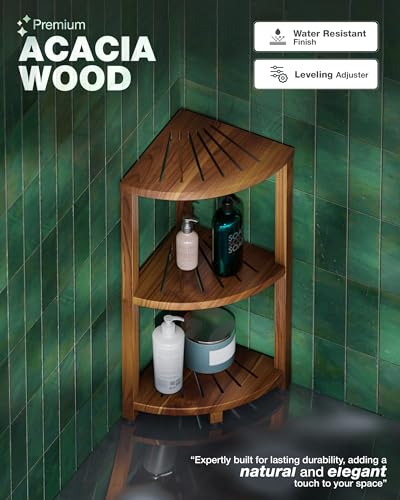 - هيكل من خشب الأكاسيا بتصميم فاخر: مصنوع من خشب الأكاسيا الطبيعي، يضيف هذا الرف الزاوي أناقة ومتانة لمساحتك. خصائصه المقاومة للمياه تجعله مثاليًا للبيئات الرطبة، مما يضمن بقاءه جميلًا وعمليًا في الحمامات والمناطق المعرضة للرطوبة.