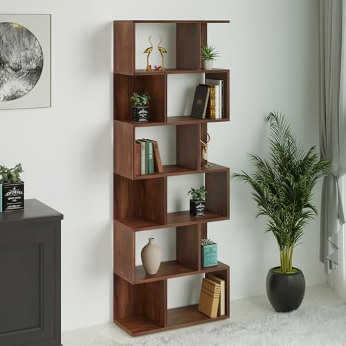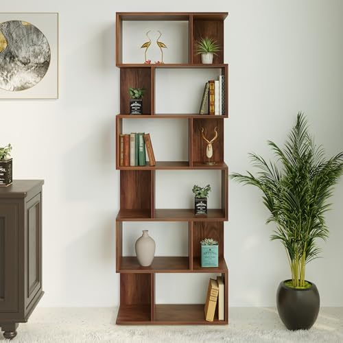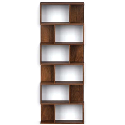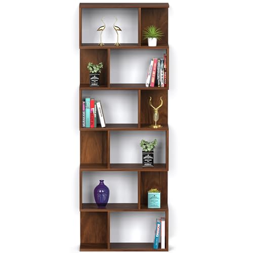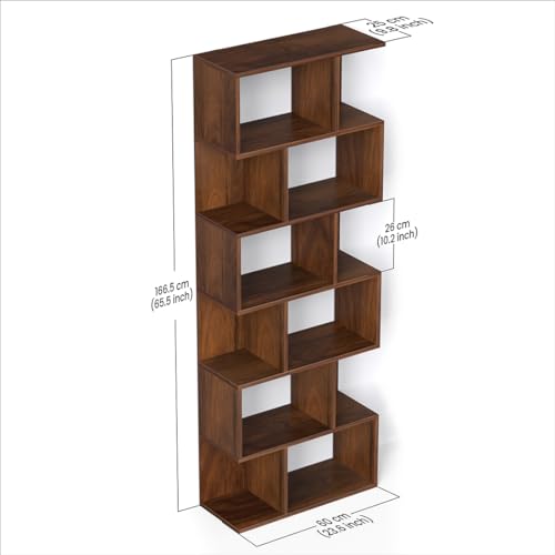 BLUEWUD - بلوود رف كتب خشبي هندسي من كروسبون منظم للكتب مع ارفف للديكور خزانة عرض قائمة على الارض للمكتبة المنزلية خشب القيقب البني