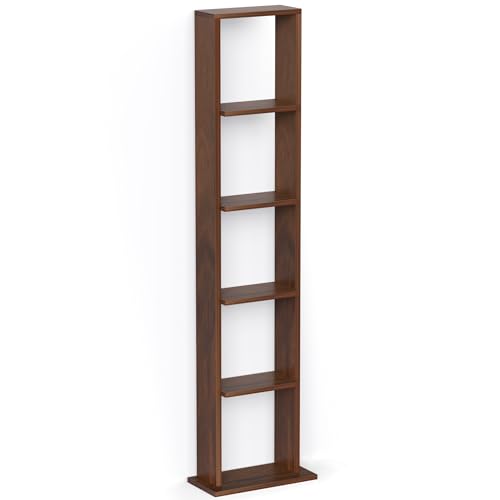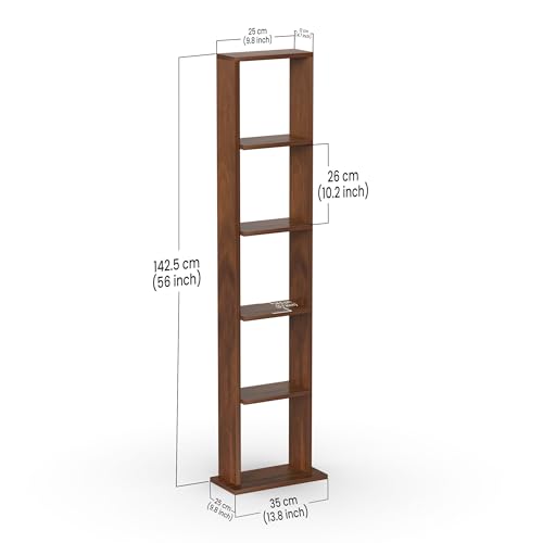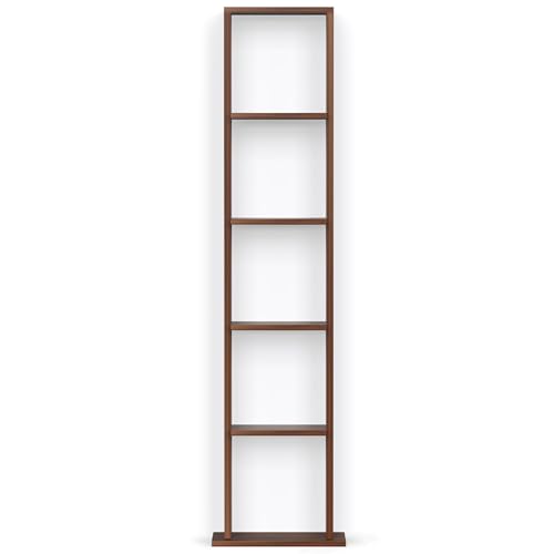 BLUEWUD - خزانة رفوف والتن بتصميم قائم بذاته على الأرض للكتب من الخشب المصنع، منظم كتب بأرفف للديكور، لأثاث مكتبة المنزل من بلوود، لون بني (Maple)