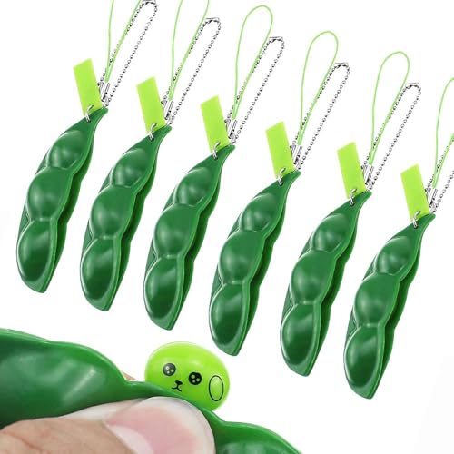 BlueXP - مجموعة ألعاب ضغط من بلو اكس بي مكونة من 6 قطع من دلايات فول الصويا، سلسلة مفاتيح للموبايل، لعبة على شكل بازلاء تقلل من القلق والتوتر