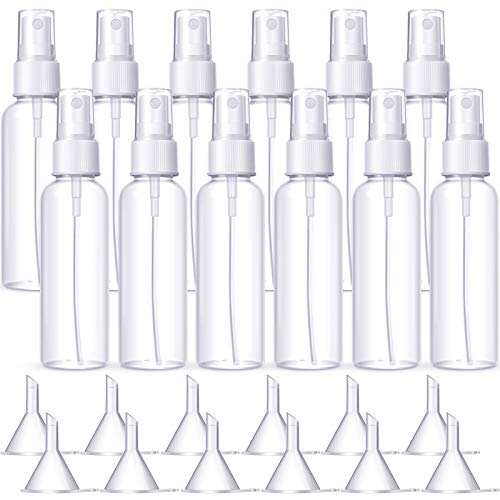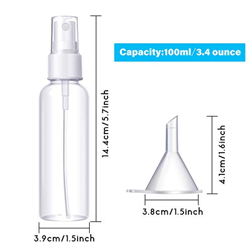 Blulu - 12 قطعة من زجاجات رذاذ الرذاذ الدقيقة البلاستيكية الشفافة الفارغة لمستحضرات التجميل للسفر، حاويات سائلة قابلة لاعادة الملء و12 قطعة قمع (100 مل)