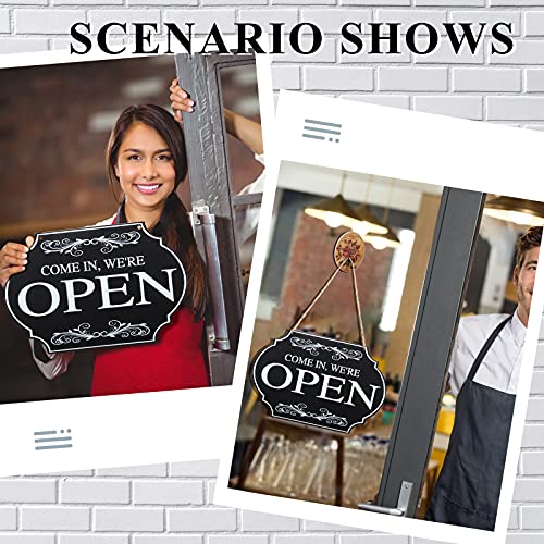 - بلولو لافتة عمل خشبية ريفية مفتوحة ومغلقة بوجهين قابلة للعكس Come In We Open or Closed Store لافتة معلقة لنافذة باب المقهى والمتجر، 11.8 × 7.8 انش (لوحة سوداء، كلمات بيضاء)