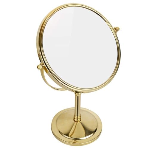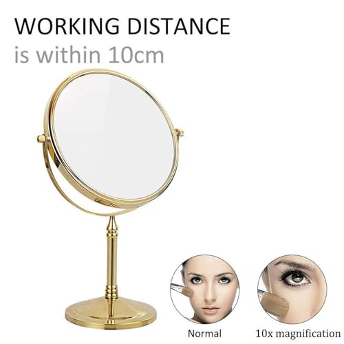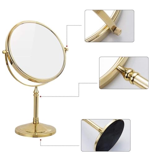 BLUPOWHT - Countertop Makeup Mirrors,8 inch Double Sided Brass Magnifying Mirror,Tabletop 360°Swivel Cosmetic Vanity Shaving Mirrors(Color:Gold,Size:5X)