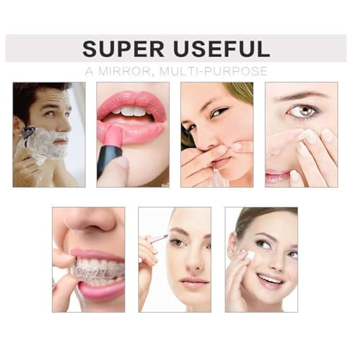 - Double sides, one side is normal and the other side is magnifying mirror. (3X, 5X, 7X, 10X for your selection) allows you great convenience for observing the details to make things right, suitable for makeup, squeezing acne, shaving, etc.