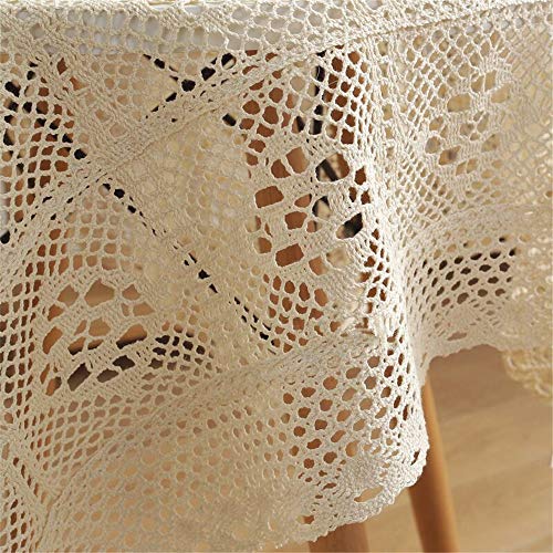BMIDRUT - مفرش طاولة مربع بتصميم كلاسيكي من الكروشيه من الدانتيل بلون بيج، غطاء طاولة مربع لحفلات الزفاف والحفلات المنزلية، قطن، من نوذر