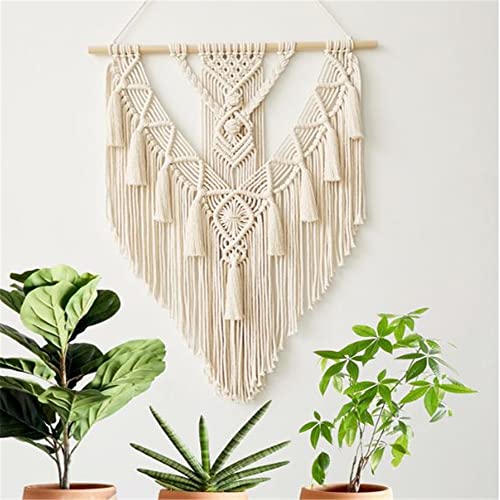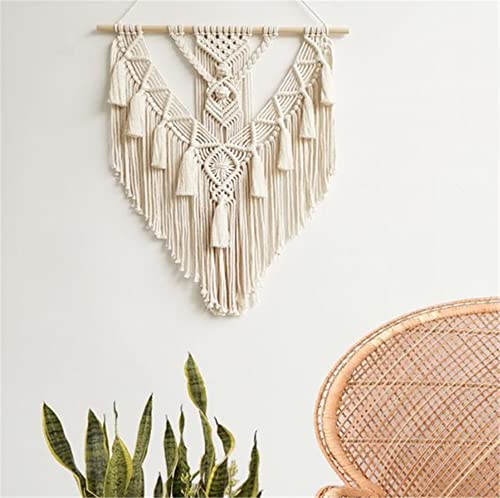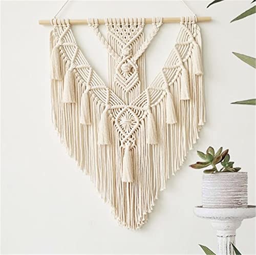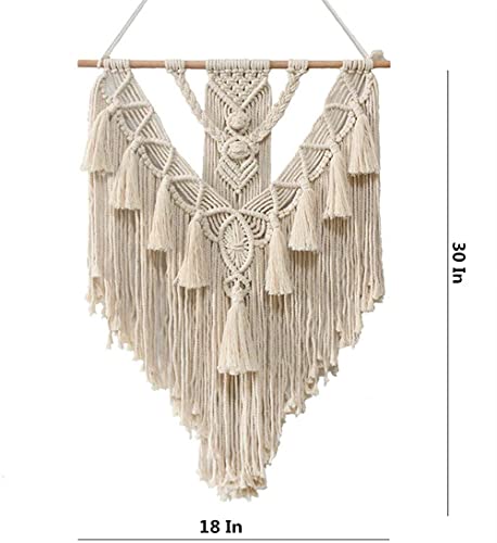 BMIDRUT - بميدروت نسيج مكرمية معلق منسوج بنمط بوهو مصنوع يدويا لديكور الحائط المنزلي مقاس 18 × 30 انش (بيج)، قطن