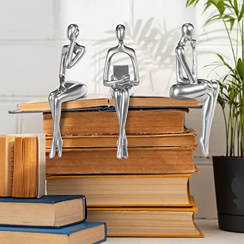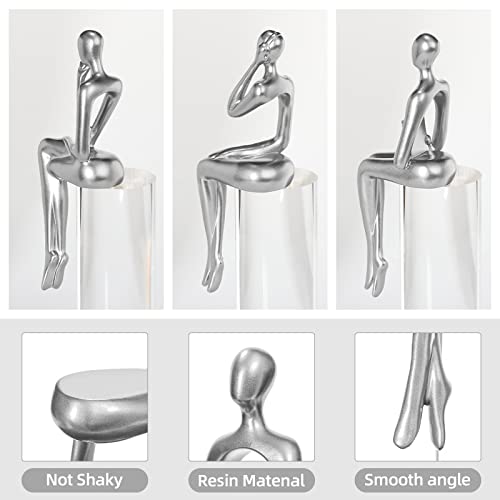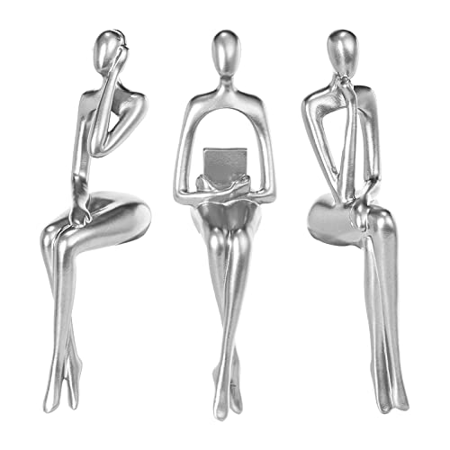 BMLCGJ - تماثيل مفكر للديكور بتصميم تجريدي مصنوعة من الراتنج الذهبي ومناسبة لتزيين المنزل وغرفة المعيشة والمكتب والرف وتعتبر خيارًا رائعًا للهدايا من BMLCGJ، عبوة من 3 قطع، لون فضي