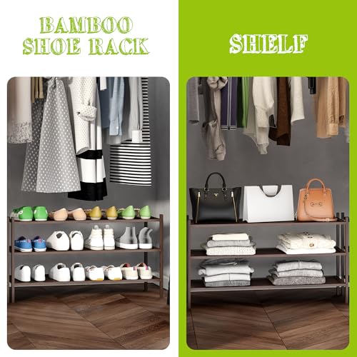 BMOSU - جزامة من خشب الخيزران قابلة للتكديس بـ3 مستويات من بي موسو، منظم تخزين للرواق والمدخل وغرفة المعيشة، (لون بني)
