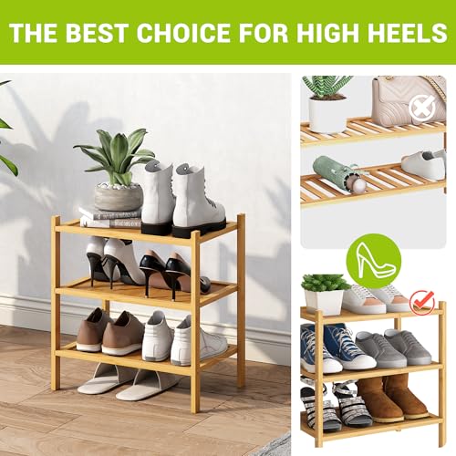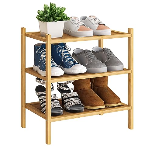 BMOSU - بي موسو رف احذية صغير من الخيزران 3 طبقات للمدخل رفوف قائمة بذاتها فاخر قابل للتكديس منظم تخزين لخزانة المدخل وغرفة المعيشة طبيعي