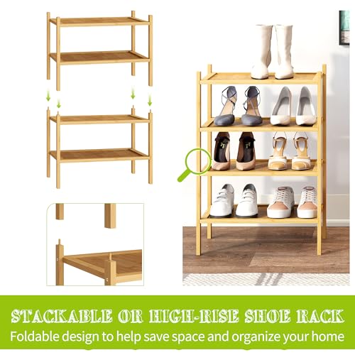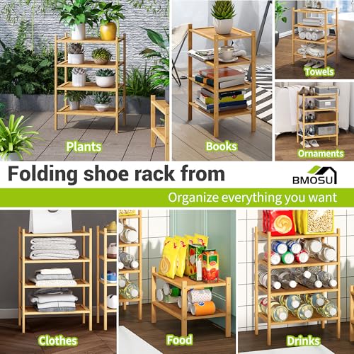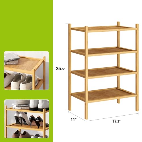 BMOSU - بي موسو رف احذية صغير من الخيزران 4 طبقات للمدخل رفوف قائمة بذاتها فاخر قابل للتكديس منظم تخزين لخزانة الرواق وغرفة المعيشة طبيعي