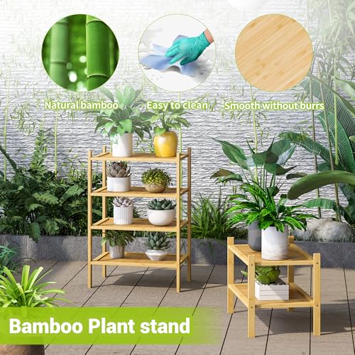- 【رف تخزين متعدد الوظائف】 يمكن استخدام رف الخيزران كرف أحذية أو رف زهور أو حامل وعاء زهور أو رف حمام أو رف مطبخ. عند استخدامه كرف أحذية، يمكن لكل رف تخزين زوجين من الأحذية. يمكنك أيضًا عرض النباتات الجميلة وفقًا لاحتياجاتك، ويمكنك وضع وعاءين من النباتات في كل طابق. أضف النظافة إلى منزلك مع جعله حيويًا أيضًا.
