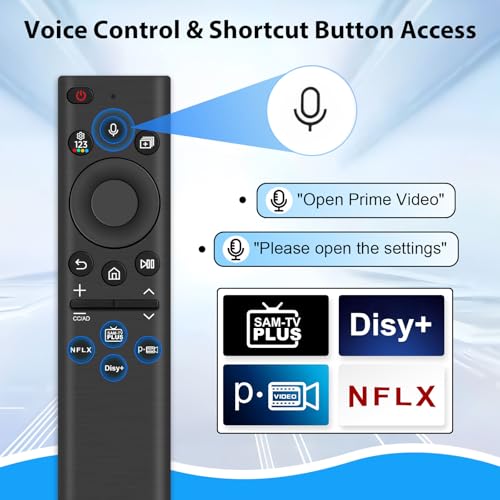 - وصول البث بلمسة واحدة: مع أزرار الاختصار المخصصة لتلفزيون سامسونج بلس ونتفليكس وبرايم اي فيديو وديزني+، يمكنك الوصول على الفور إلى خدمات البث المفضلة لديك بضغطة واحدة فقط. لا حاجة للتنقل عبر القوائم - استمتع بالترفيه السلس في متناول يدك.