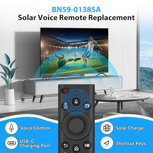LUIRSAY - جهاز تحكم عن بعد BN59-01385A لتلفزيون سامسونج سمارت، قابل لإعادة الشحن عبر بلوتوث وشحن بطاقة شمسية، متوافق مع تلفزيونات سامسونج نيو ال اي دي 4K فائقة الوضوح 2021-2022 بـ 4 أزرار اختصار، أسود