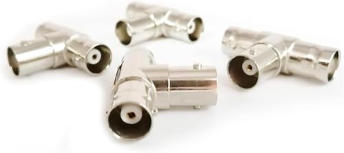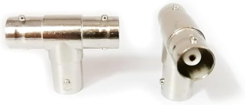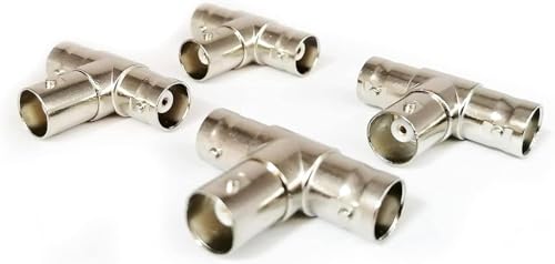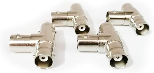 Generic - مقسم بي ان سي ثلاثي الاتجاهات على شكل حرف T، انثى الى بي ان سي مزدوج انثى، موصل محوري RF لكاميرات المراقبة والهوائي والكيبل المحوري (عبوة من 4 قطع)