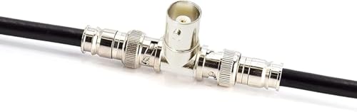 - تصميم ثلاثي الاتجاهات: موصل بي ان سي على شكل حرف T يحول منفذ أنثى واحد إلى منفذين أنثى مزدوجين لتوزيع الإشارة بكفاءة