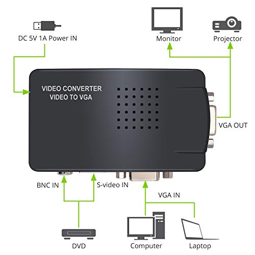 LiNKFOR - محول رقمي VGA الى VGA وBNC الى VGA ومنفذ اس فيديو الى مخرج PC VGA متوافق مع جهاز ماك تي في والكمبيوتر والكاميرا ودي في دي ومسجل الفيديو الرقمي
