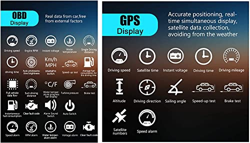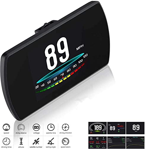 Generic - شاشة عرض امامية T812 عالمية للسيارة من بنتيم بنظام مزدوج او بي دي 11، سرعة السيارة كم/ساعة، عدد الدورات في الدقيقة للمحرك، تحذير السرعة الزائدة، قياس الاميال، درجة حرارة الماء، الجهد