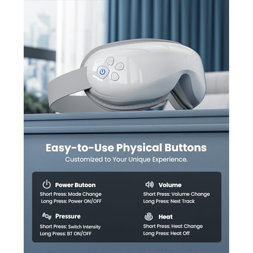 BOB AND BRAD - جهاز تدليك العين بالحرارة والتبريد للصداع النصفي مع نظارة اي اويسيس 3 من بوب اند براد، قناع كهربائي للنوم مع موسيقى للعيون المنتفخة والجافة والهالات السوداء وإجهاد العين، هدية للنساء والرجال