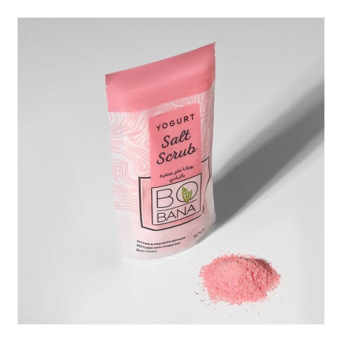 - ملح الصنفرة: غني بالزبادي الطبيعي للتقشير اللطيف وإزالة خلايا الجلد الميتة مع الترطيب العميق
