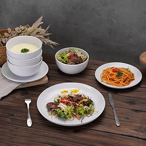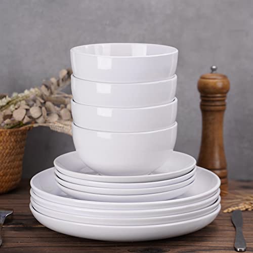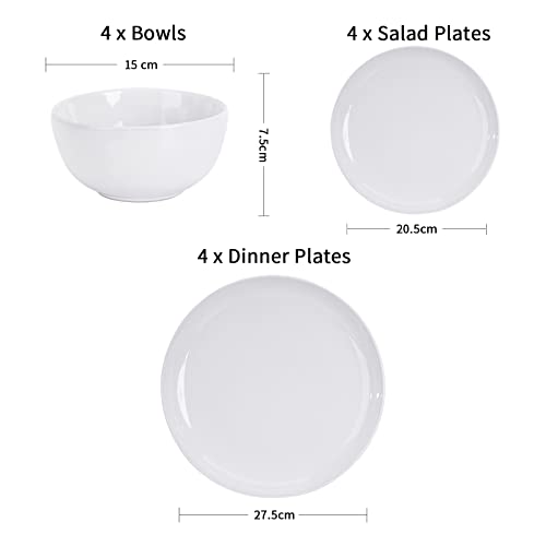 BOBOYM - طقم ادوات مائدة من بوبويم، 12 قطعة من الخزف الحجري بدرجة ايه لـ4 اشخاص، طقم اطباق واوعية للمطبخ، مجموعة ادوات مائدة بيضاء