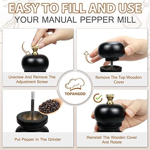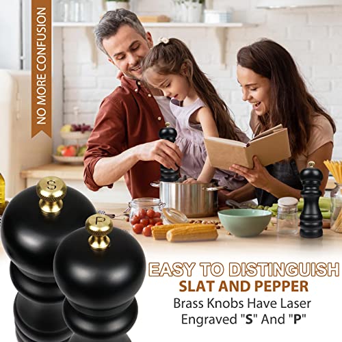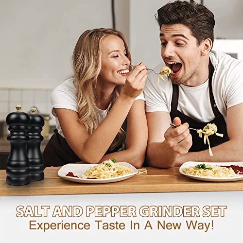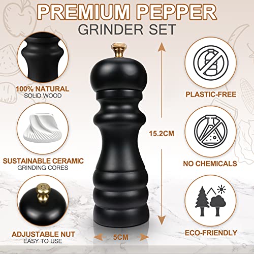 BOCHION - مجموعة مطحنة فلفل وملح خشبية، مطحنة يدوية بلون أسود مطفي مع نظام دوار من السيراميك لدرجة خشونة قابلة للتعديل، مطحنة توابل قابلة لإعادة الملء للاستخدام المنزلي والمطبخ من بوشيون، 16.5 سم، قطعتان