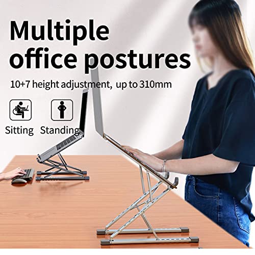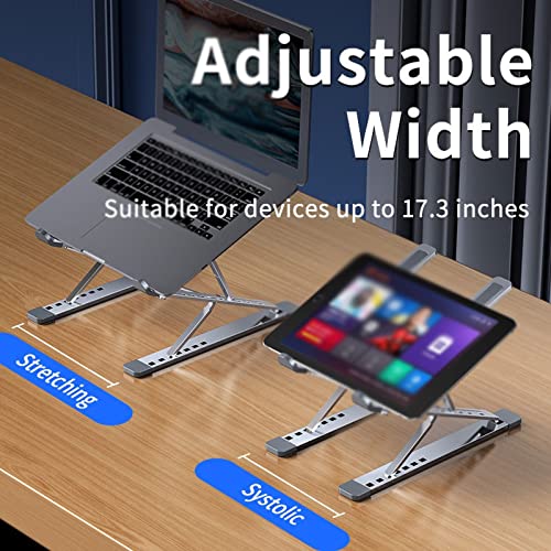 Bodhdbsbsa - حامل لاب توب من بوده دبسج، حامل قابل للتعديل من الالومنيوم للتابلت والنوت بوك، حامل قابل للطي للطاولات مزود بقاعدة تبريد (اللون: اسود)