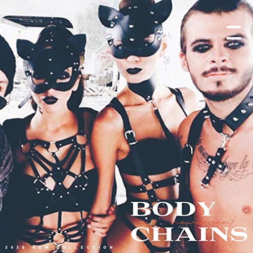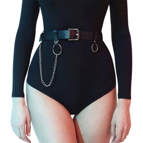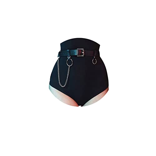 BODIY - بودي حزام سلسلة بطن بانك اسود بطبقات من الجلد، سلسلة خصر مثيرة، سلسلة للجسم، اكسسوارات مجوهرات للنساء والفتيات