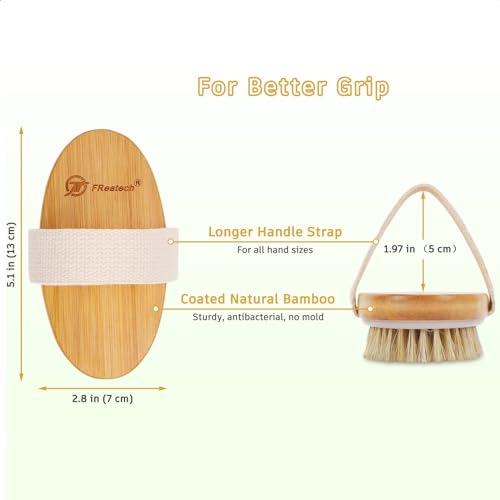 - -【فرشاة تنظيف الجسم الجافة】شعيرات طبيعية صلبة تزيل الجلد الميت والسيلوليت بسهولة لجعل البشرة أكثر نعومة، وتعزيز الدورة الدموية والتصريف اللمفاوي، بشرة خالية من العيوب بناءً على الاستخدام المنتظم. ضعي الكريم أو الزيت إذا كانت البشرة جافة للغاية أو حساسة لتجنب التلف. تُعلق لتجف في الهواء بعد البلل.