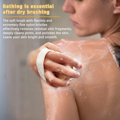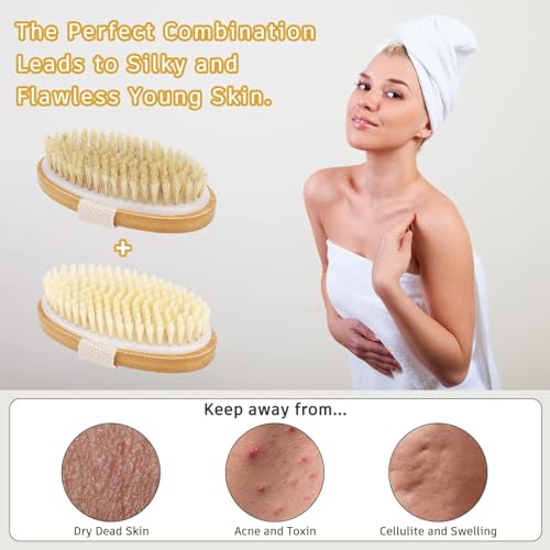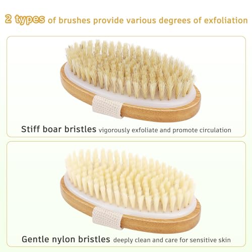 SWIUKPHE - مجموعة فرش للجسم للتنظيف الرطب او الجاف - قطعتان من فرشاة جافة بشعيرات طبيعية لتقشير البشرة وازالة السيلوليت والتصريف اللمفاوي، فرشاة استحمام للاستحمام مع شعيرات نايلون