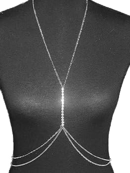 Generic - سلسلة للجسم لبيكيني الصدر، سلسلة سرج للشاطئ، اكسسوارات مجوهرات للجسم للحفلات للنساء والفتيات (فضي)