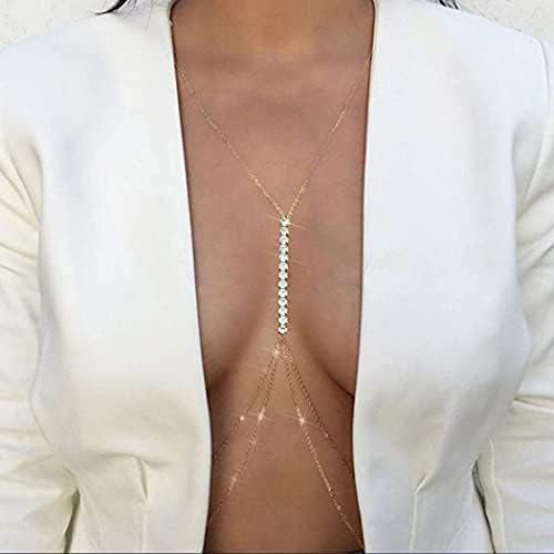 Generic - سلسلة جسم ذهبية لبيكيني الصدر، سلسلة سرج للشاطئ، اكسسوارات مجوهرات للجسم للحفلات للنساء والفتيات (ذهبي)