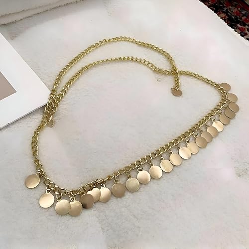 Generic - سلسلة خصر بودي جوليري - حزام معدني انيق مع حلي قرص متشابكة، متوفرة باللون الفضي او الذهبي، قابلة للتعديل لتناسب جميع مقاسات الخصر من اجل الاناقة اليومية.