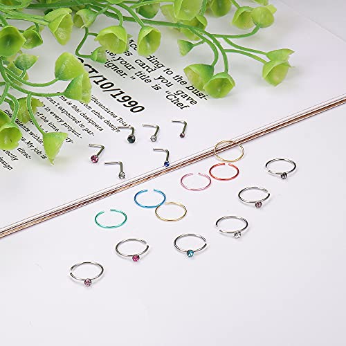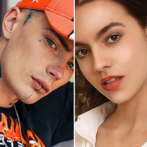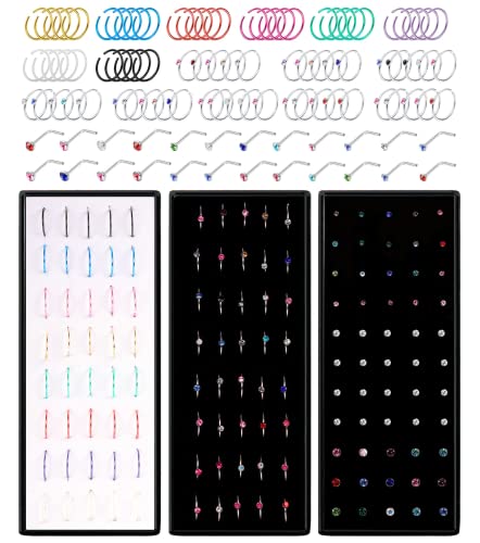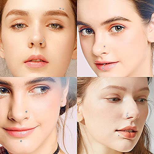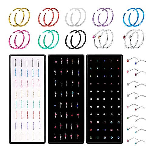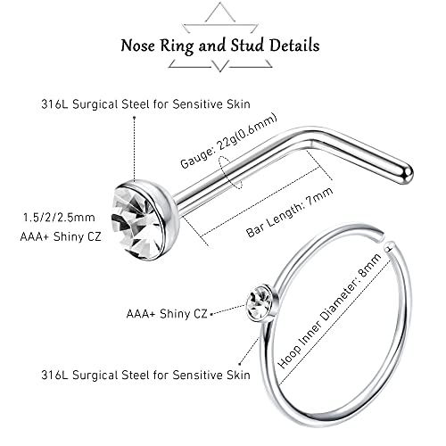 BodyBonita - حلقان انف 14-160 قطعة من بودي بونيتا، حلقان بريمة وحلقات دائرية وحلقان حرف L وشكل عظمة من الفولاذ الجراحي للانف، مجوهرات بيرسينج للانف 1.5/2.5 ملم زركونيا مكعبة