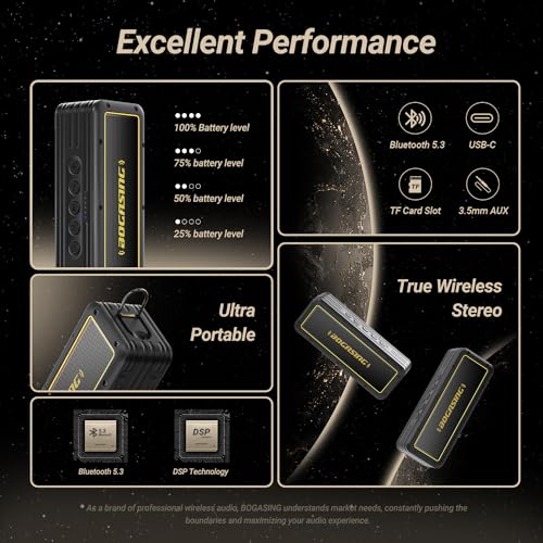 BOGASING - مكبر صوت بلوتوث G4، صوت مذهل ومتوازن بقوة 50W مع صوت باس غني، وقت تشغيل 24 ساعة، مقاوم للماء IPX7، بلوتوث 5.3، EQ، تقنية TWS، منفذ بطاقة TF، منفذ AUX، منفذ USB، للاستخدام المنزلي والخارجي من بوجاسينج
