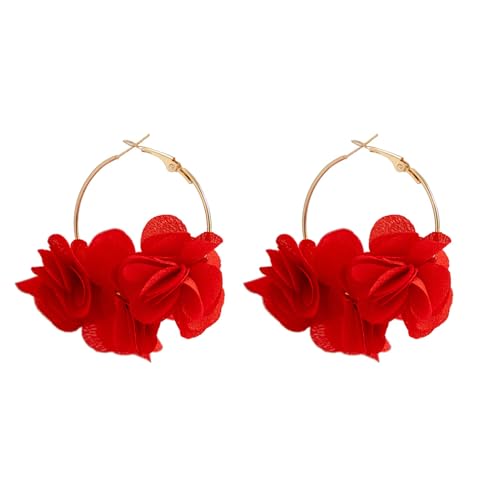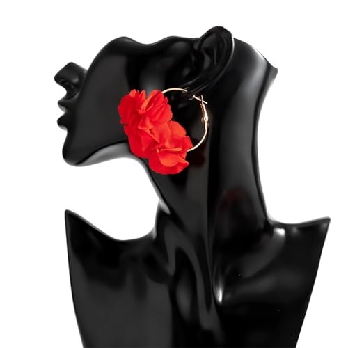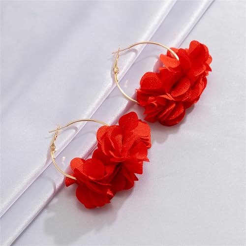 GYRMMUE - Bohemia Fabric Rose Flower Hoop Earrings For Women Girls,Colorful Floral Dangle Earrings Fashion Exaggerated Statement Earrings Y2K Aesthetics Summer Beach Earrings Gifts