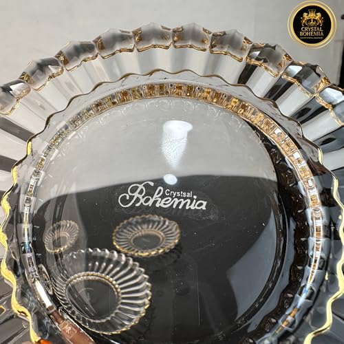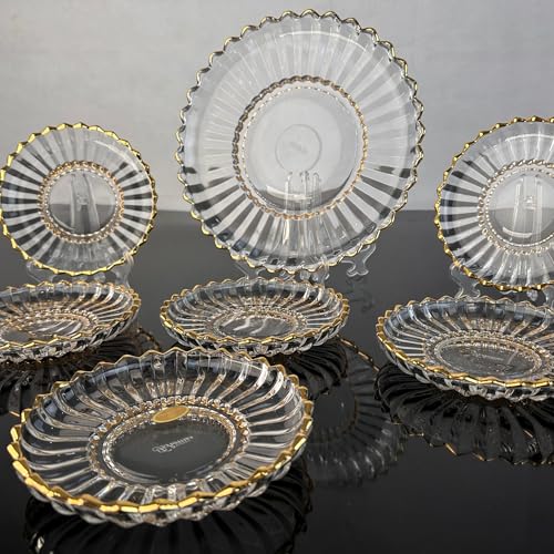 Generic - طقم جاتوه شمس كريستال بوهيمي بحافة ذهبية – طبق تقديم كبير + 6 أطباق