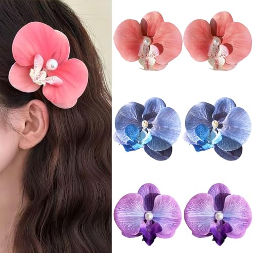 SONGJIE - مشابك شعر بتصميم زهرة الأوركيد البوهيمية، مجموعة من 6 قطع، مشابك فالاينوبسيس الاصطناعية للعطلات على شاطئ البحر، اكسسوارات شعر الزفاف، دبابيس شعر للنساء والفتيات والسيدات والأطفال