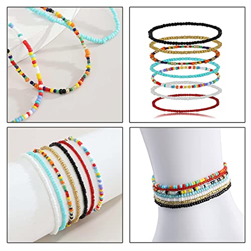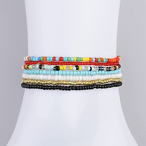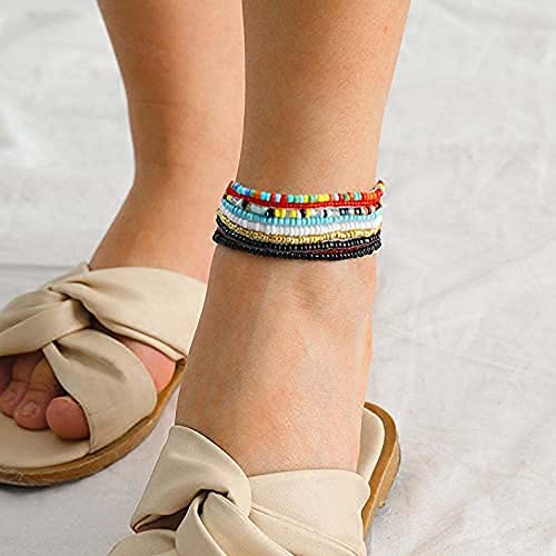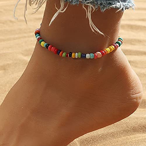Thboxes - سوار خلخال بوهو، سوار من خرز الكاحل متعدد الطبقات، خلخال مصنوع يدويًا من الخرز متعدد الالوان، مجوهرات للقدم للنساء والفتيات
