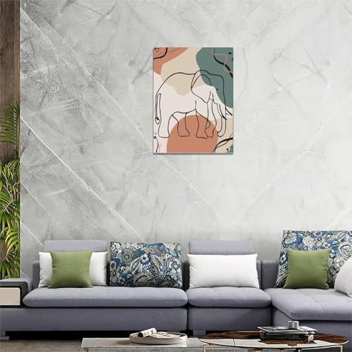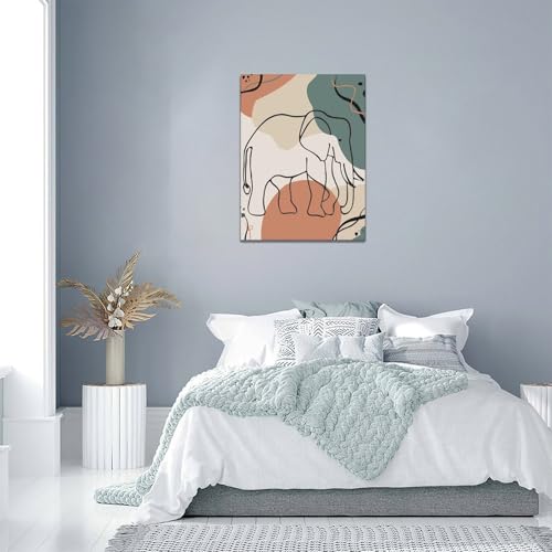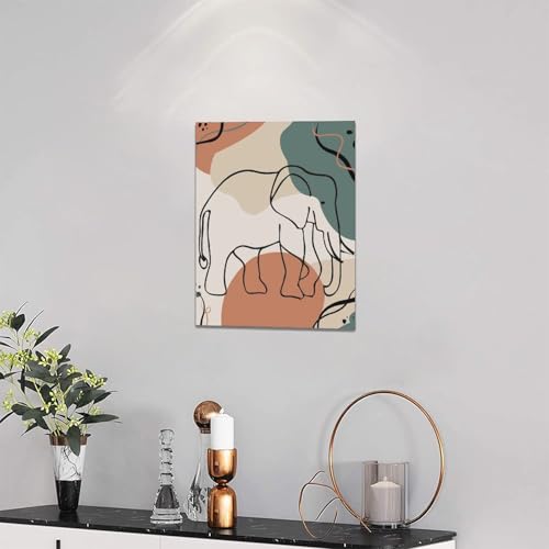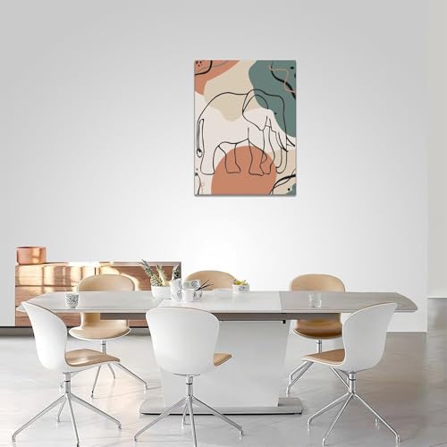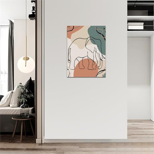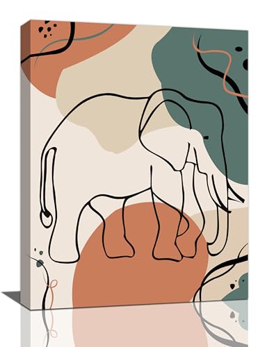Mecowcm - لوحة فنية جدارية بتصميم فيل بوهو بتصميم بسيط على شكل فيل، لوحة قماشية تجريدية مطبوعة لديكور المنزل واعمال فنية حديثة مؤطرة للحمام وغرفة المعيشة وغرفة النوم والمكتب مقاس 12 × 16 انش