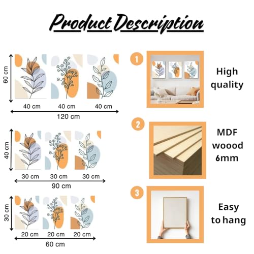 Generic - مجموعة لوحات فنية جدارية بتصميم نباتات عصرية بنمط بوهيمي بإطار من خشب مضغوط MDF متوفرة بمقاسات متعددة، سمك 6 ملم مقاس (40×60 سم) عبوة من 3 قطع