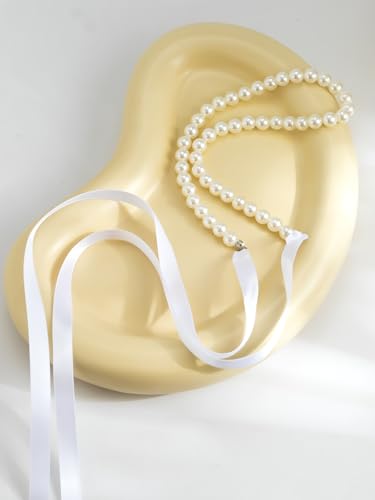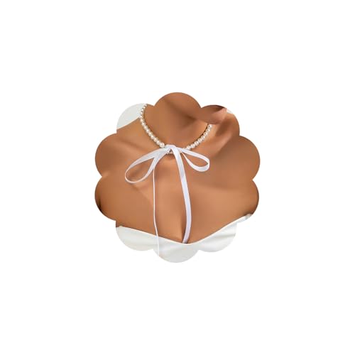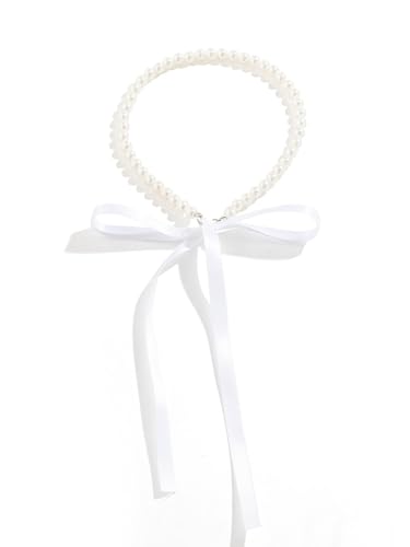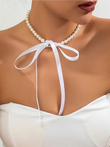 Egfyqzbryn - طوق ضيق من اللؤلؤ على شكل ياقة بفيونكة أمامية بطابع بوهيمي، قطيفة سوداء بشريط طويل وعُقد للرقبة، مجوهرات حفلات للنساء والفتيات من كويزي، لون أبيض
