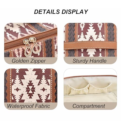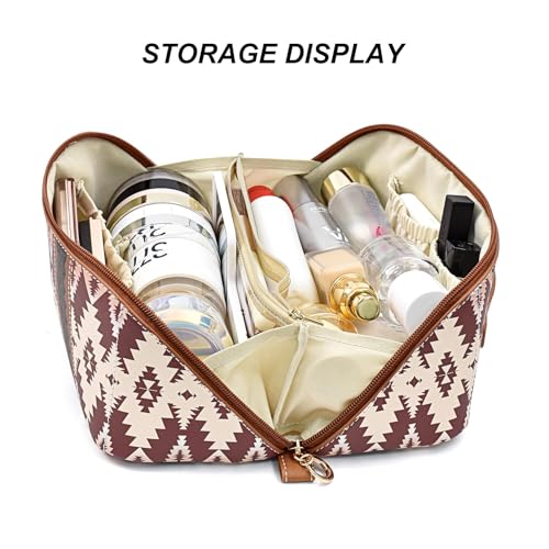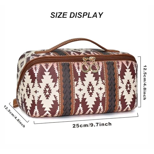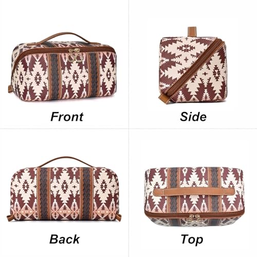 NALACAL - شنطة مكياج بتصميم غربي بوهو، شنطة مكياج كاجوال من البولي يوريثين، شنطة منظمة للمكياج للسفر، شنطة تخزين محمولة مقاومة للماء للنساء، سعة كبيرة للسفر والاستخدام اليومي وعطلات نهاية الاسبوع