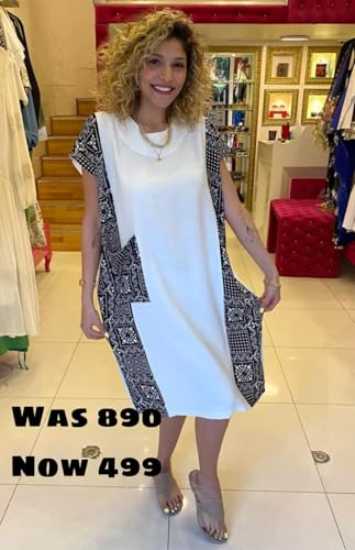 Boky Love - فستان كاجوال من الكتان للنساء من بوكي لوف، أبيض، ميديوم/لارج-اكس لارج/اكس اكس لارج، قصة واسعة