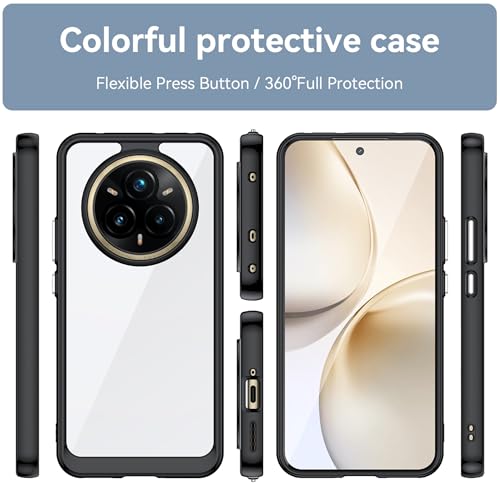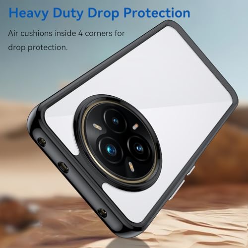 BOKYAS - غطاء حماية من بوكياس لموبايل ريلمي 14 برو بلس (برو+) - جراب سيليكون شفاف كريستالي، جراب مضاد للاصفرار مع ظهر صلب من البولي كربونات، اسود